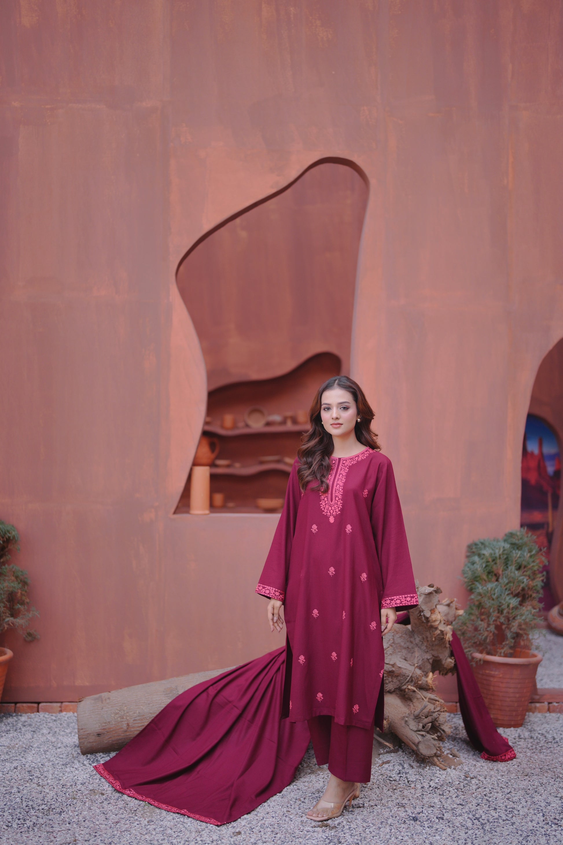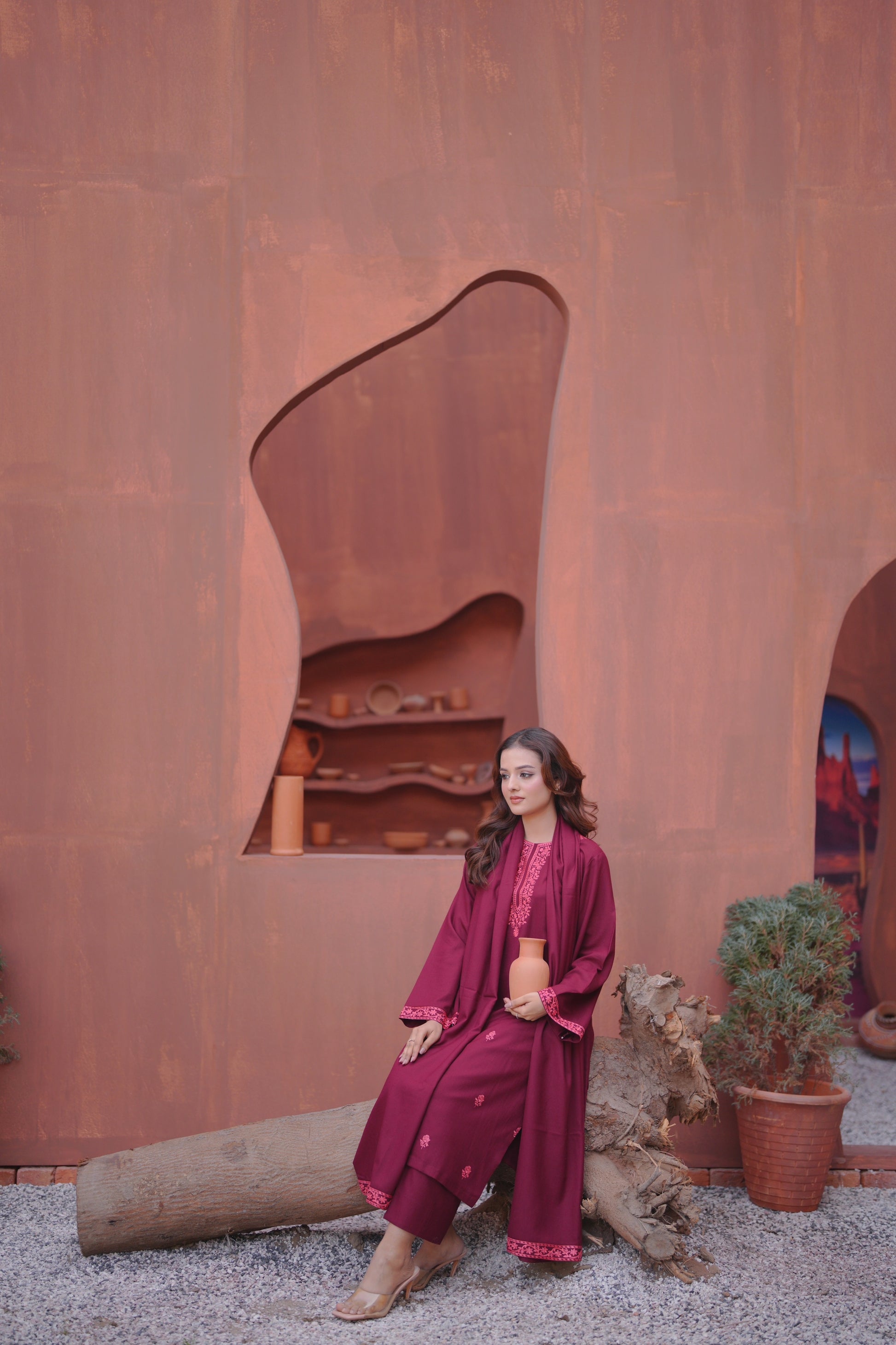 Add timeless charm to your winter wardrobe with Ariana. It is available as a 3-piece dress. The stunning shawl perfectly complements the outfit, making it a must-have this season.